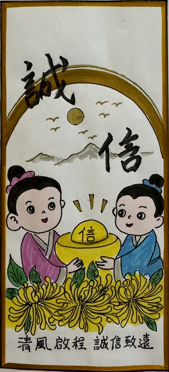 為加強學生對「承擔精神」、「仁愛」、「守法」及「誠信」等四個價值觀和態度的認識,視藝科舉辦了「閃亮品格親子襟章設計比賽」,同學們的得獎作品都別出心栽,很有創意,恭喜各位獲獎同學。