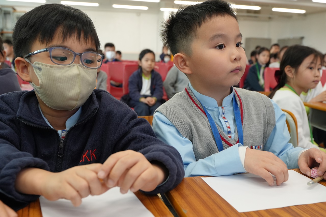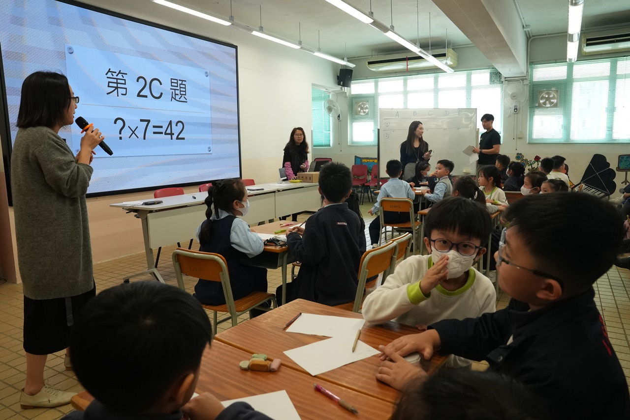 二年級同學已背熟乘數表,成為乘法小達人進行數學比賽,當天的聯課活動氣氛緊湊熱烈,同學都全情投入參與!