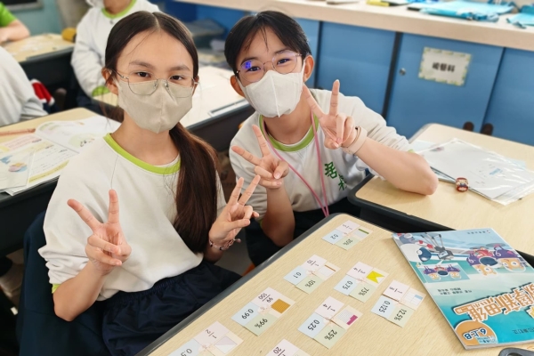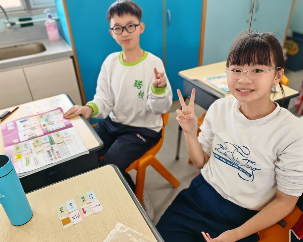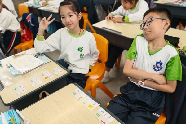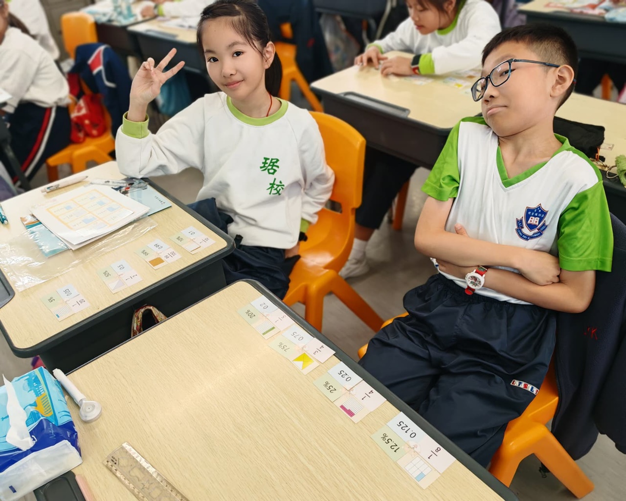 學生在分組遊戲中,熟悉把百分數化作小數或分數,課堂充滿互動。
