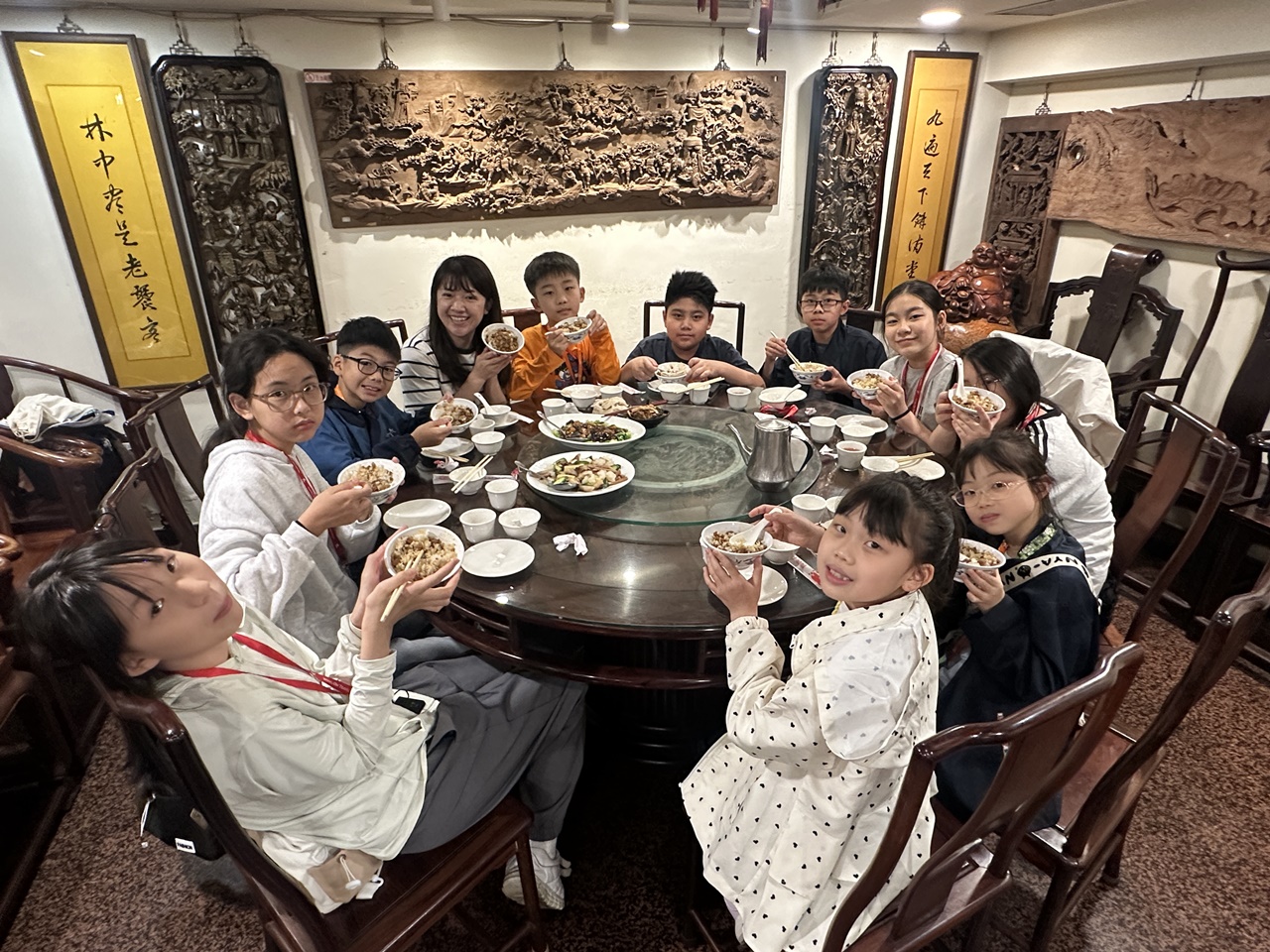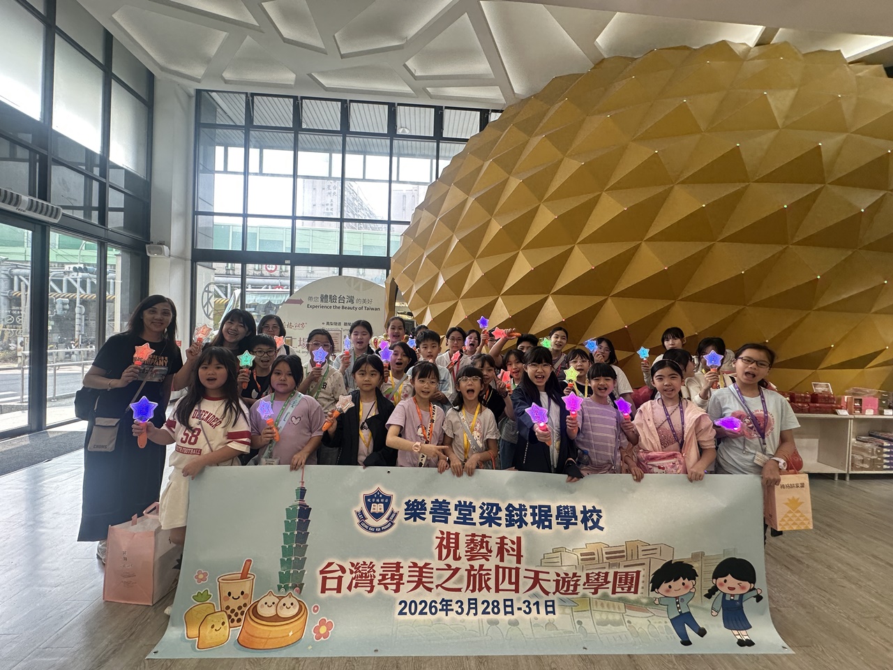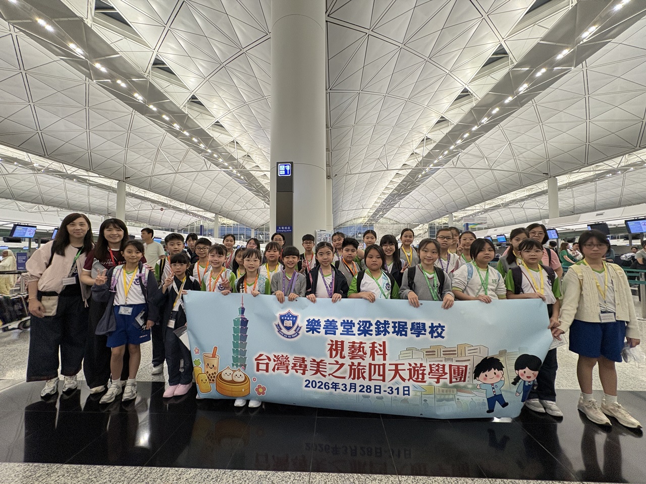 「台灣尋美之旅四天遊學團」已於28-31/3/2026順利完成。由劉家怡老師、郭雅志老師及陳秀嫻老師帶領29位四至六年級的學生展開了四日三夜的「台灣尋美之旅」。同學們參觀了不同的藝術展館,包括蘇荷美術館、 新北市立藝術館、台北偶戲館、國立臺灣藝術教育館、寶藏巖國際藝術村、關渡美術館及兒童藝術中心,並進行了水彩畫課程及手拉坯DIY陶瓷;參觀樹火紀念紙博物館,一起嘗試造紙體驗;到訪國立臺北教育大學附設實驗國民小學,與當地小學進行交流,參觀校園及進行體驗視藝課程——植物拓印。在這次活動中,同學們透過到訪、參觀、考察和創作活動,親身了解藝術情景,培養美感觸覺和正面的生活態度。