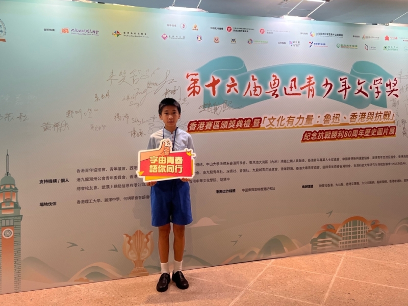 恭賀6B黎兆翔於第十六屆魯迅青少年文學獎香港賽區硬筆書法比賽(小學組)獲得三等獎