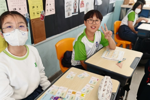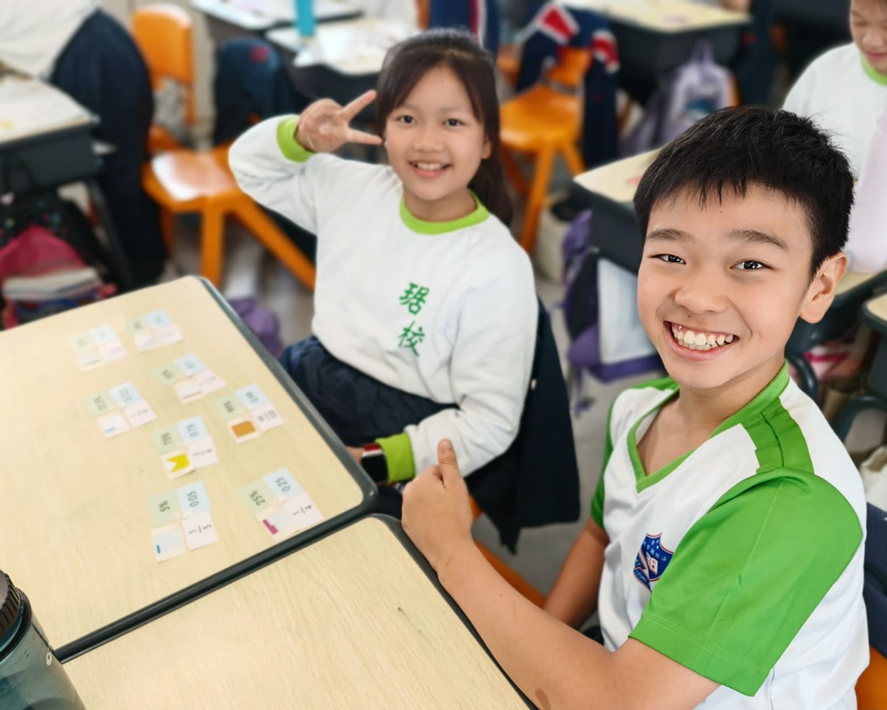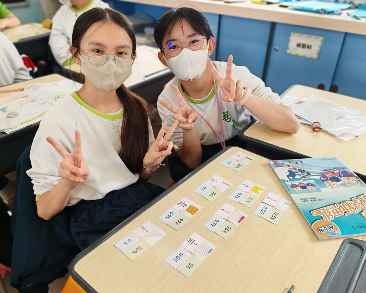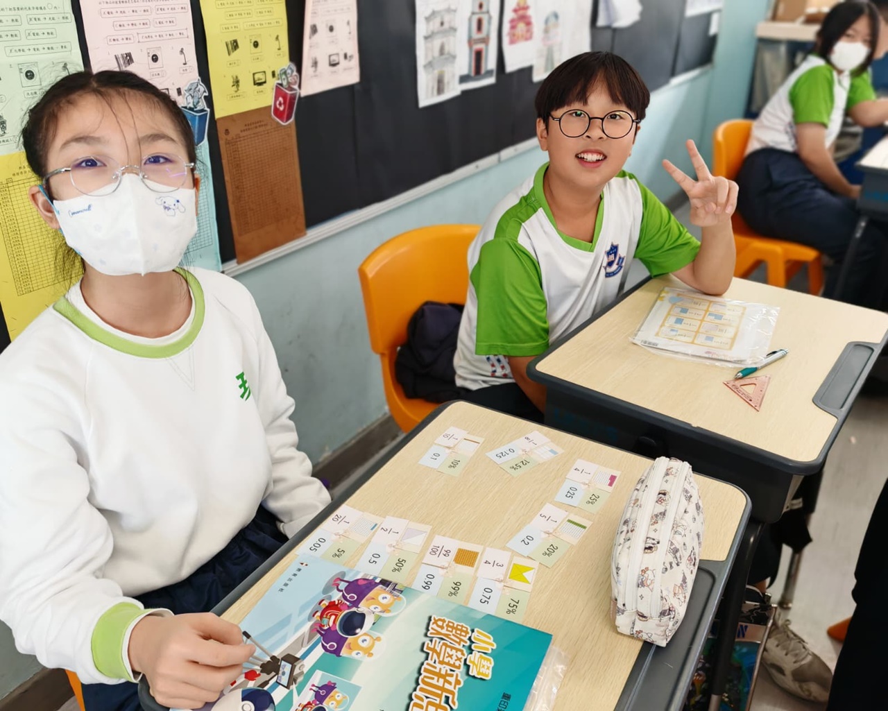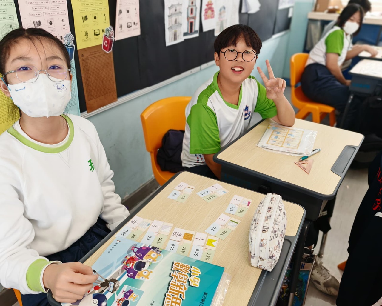 學生在分組遊戲中,熟悉把百分數化作小數或分數,課堂充滿互動。
