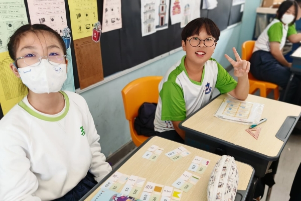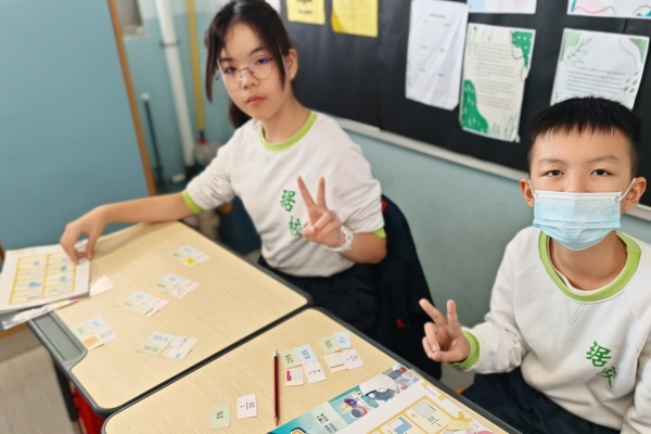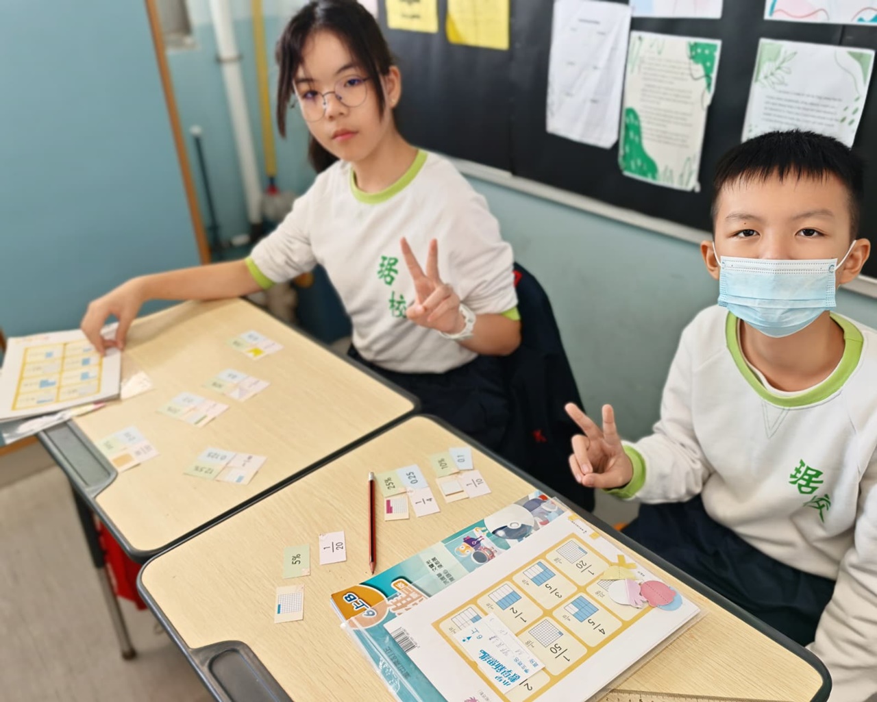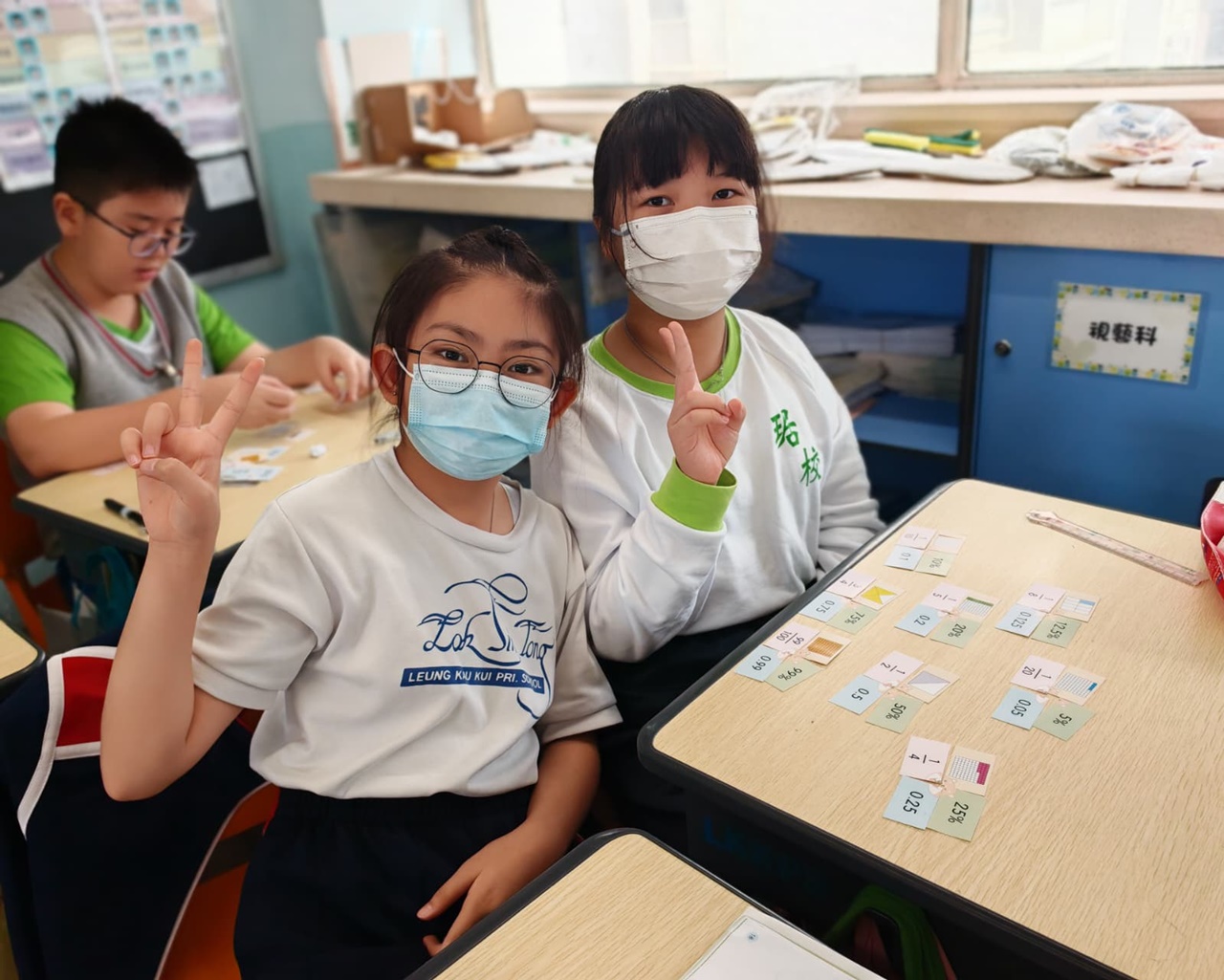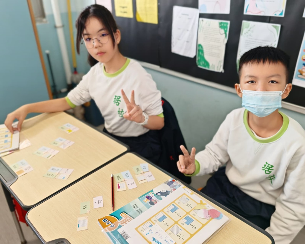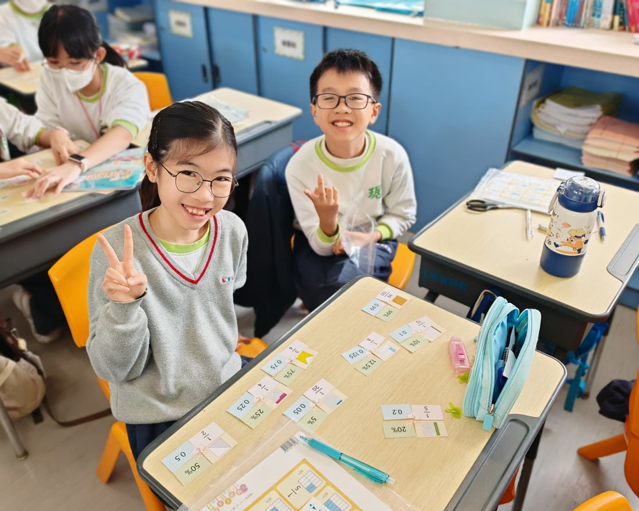 學生在分組遊戲中,熟悉把百分數化作小數或分數,課堂充滿互動。